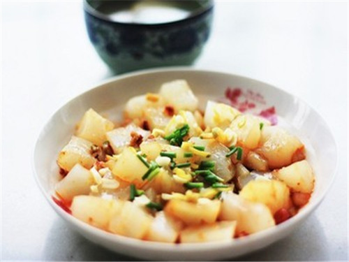 3.將調(diào)好的粉漿順直線倒入鍋中,疾速攪動加溫。但不可在溫水時倒入面漿,以防糊鍋;也不可在沸騰時倒入,以免構(gòu)成疙瘩。