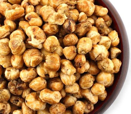 4.油炸。把半干玉米粒放入加熱的食用油中,炸至金黃酥脆。